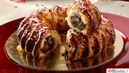 Si realizza con un guscio di fragrante pasta frolla, farcito con cioccolato, marmellata e frutta secca e poi arrotolato come per formare una ciambella.