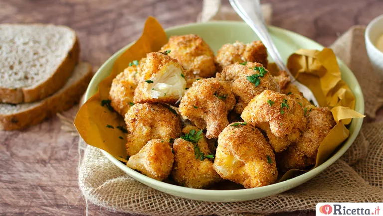 Il cavolfiore in pastella di ceci è un contorno ricco e saporito, preparato con cimette di cavolfiore cotte al vapore e poi impanate in una delicata pastella di ceci e pangrattato.