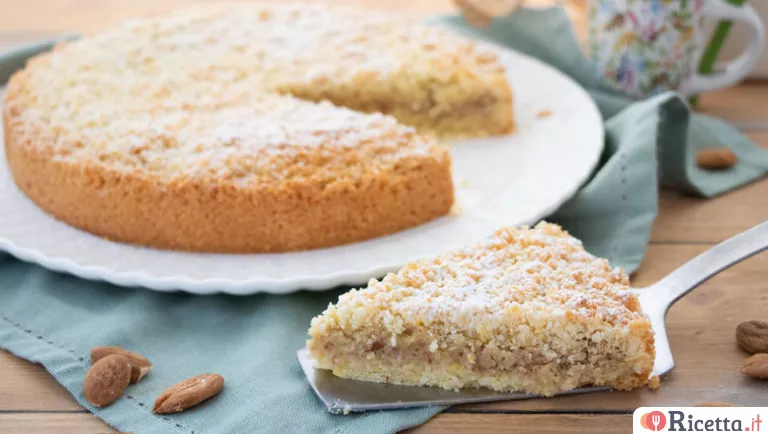 La sbriciolata frangipane è una torta friabile, ricca e profumata: ogni pezzetto racchiude il calore di una coccola fatta in casa.