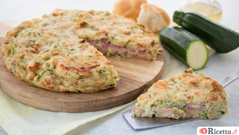 Il pane raffermo (nel mio caso senza glutine!) viene spezzettato e lasciato ammorbidire nel latte, poi si uniscono zucchine grattugiate, uova, parmigiano e aromi: si ottiene così un composto morbido e facilmente lavorabile. Una parte dell’impasto viene stesa in una teglia, farcita con prosciutto cotto e provola, e infine ricoperta con il restante impasto per racchiudere un cuore filante e saporito.
