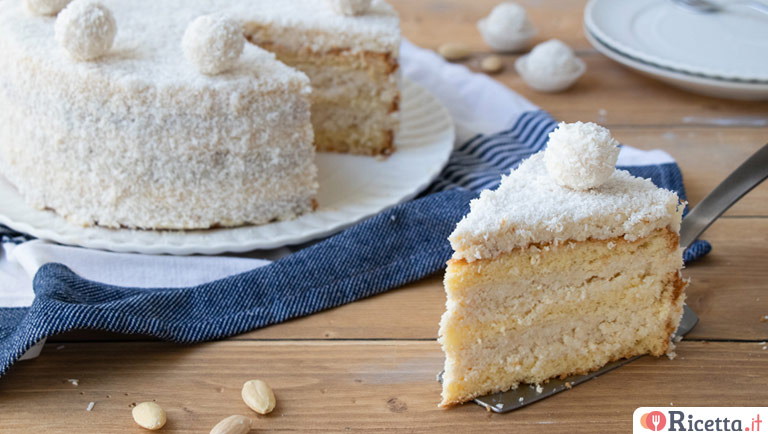 La torta Raffaello è un dessert goloso e spettacolare che si ispira agli omonimi cioccolatini.